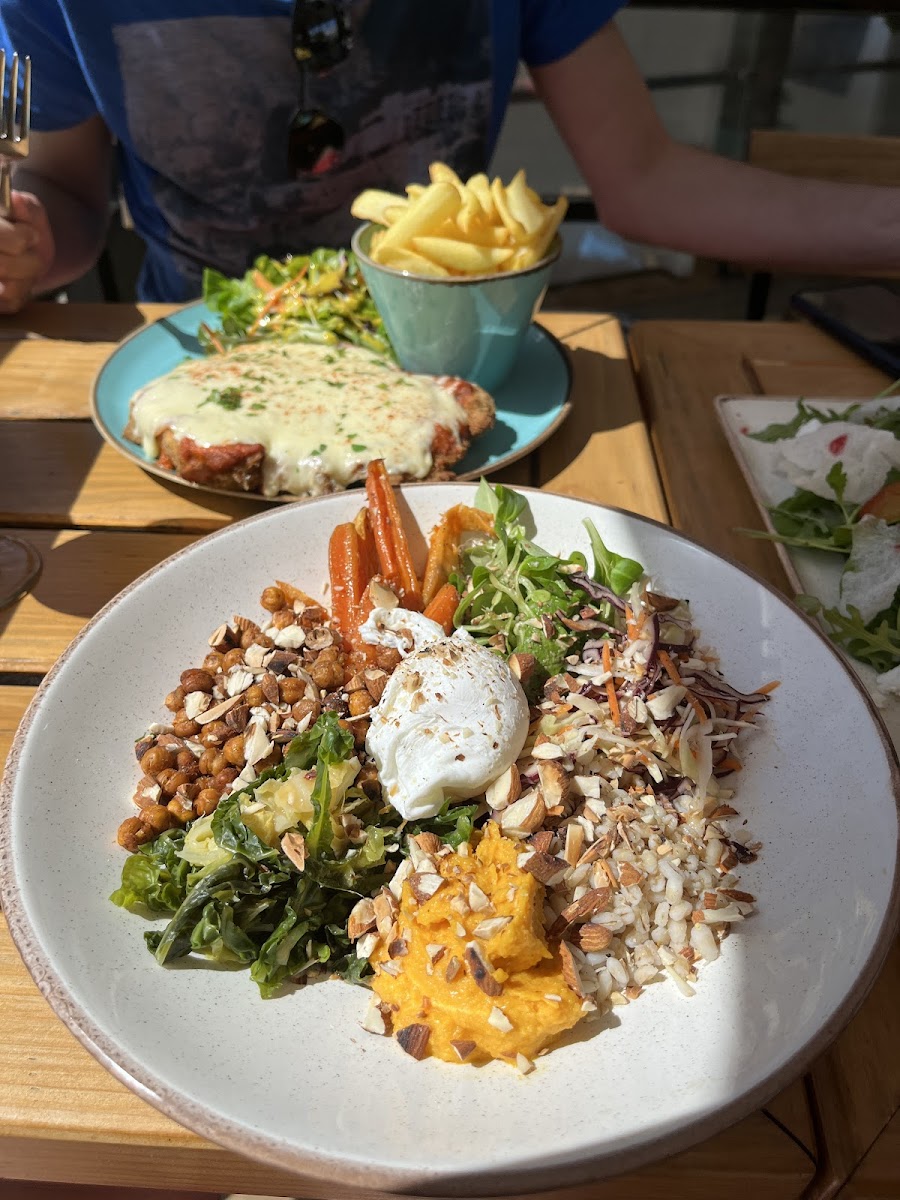 My wife and I shared the Eggplant, Nourish Bowl and the Pear and Beet Salad. All three were beautifully prepared and exceptional. Best meal of our trip so far.