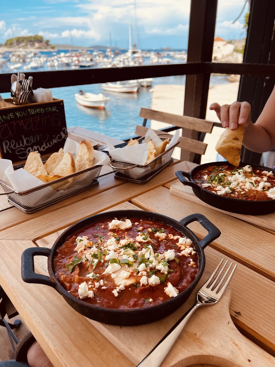 Absolutely fab restaurant. Made it my office in the mornings on a working holiday and sampled a lot of the food and the beer they had to offer. All of it was delicious, but especially the Sri Lankan breakfast hoppers (delicious and also healthy), the Egg and Bacon brioche, and the Pulled Pork Tacos. Loved the New England Pale Ale. Staff were really professional and attentive, and super nice. Kept returning as it was the best restaurant in Hvar and the best value too. Also quite healthy - good tasty veg sides which was refreshing in a Croatian tourist town! Amazing view, especially the sunset - but the food and staff made the place stand out. A reason in itself to return to Hvar! Thanks guys!!